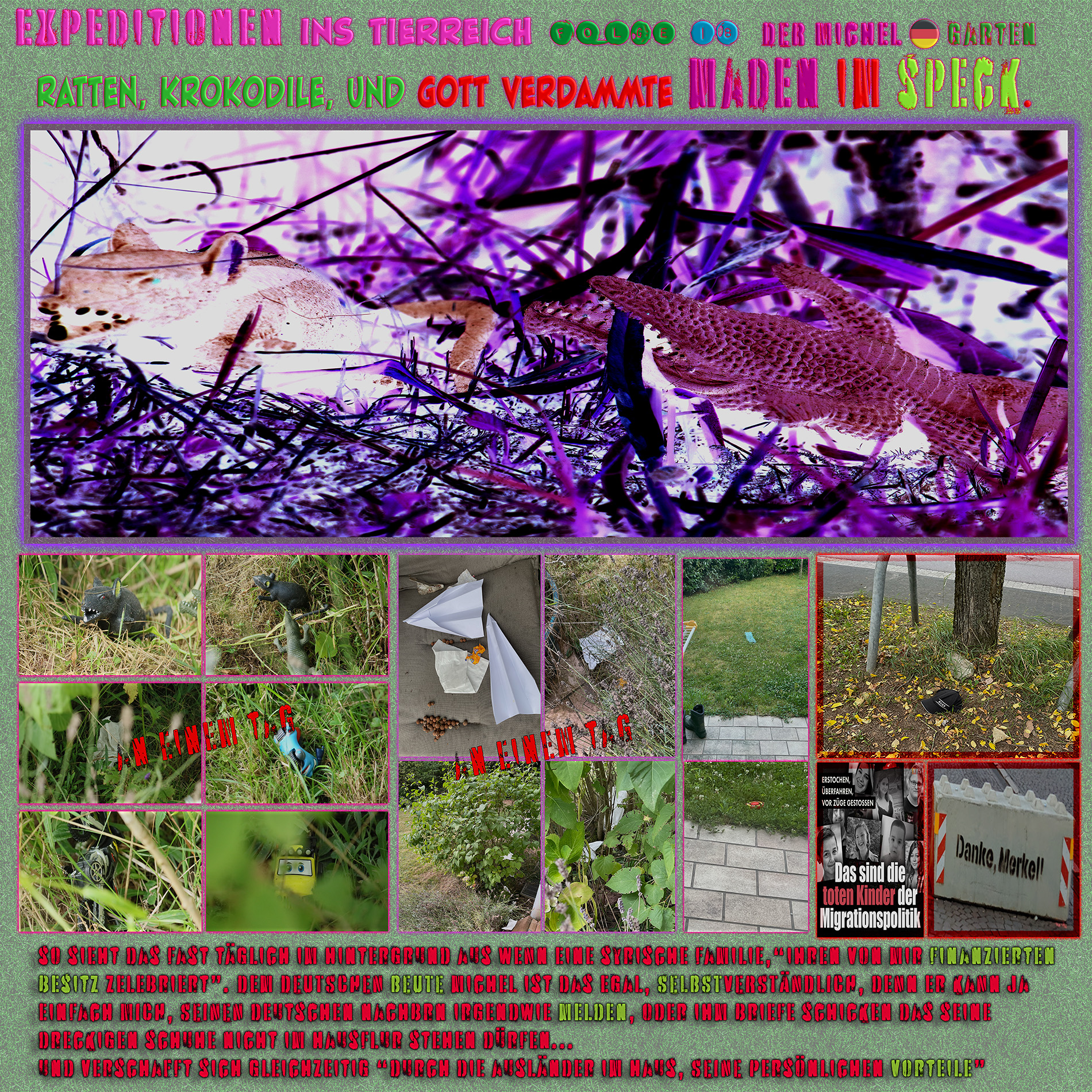 Da es aber gerade keinen sehr traurigen "nur Mieter" Menschen hier in meinem Wohnzimmer gab, den sie heimlich in seinem Stall fotografieren und beleidigen konnte, hat sie sich gar nicht erst "in unsere Diskussion, eingemischt", selbsverständlich, und natürlich, habe ich diesen Teil dann für sie übernommen. Ist doch wohl klar, sie persönlich und ihr Dirty Jürgen sind doch mittlerweile schließlich "gut befreundet, mit den neuen Ausländern hier", und besuchen sie doch regelmässig, wegen der Ordnung, der Kontrolle, und allem, also müssten die doch wohl "mehr Informationen über die Familie haben als ich, und dem Jungen viel besser helfen können", oder etwa nicht? Na das ist doch wohl...